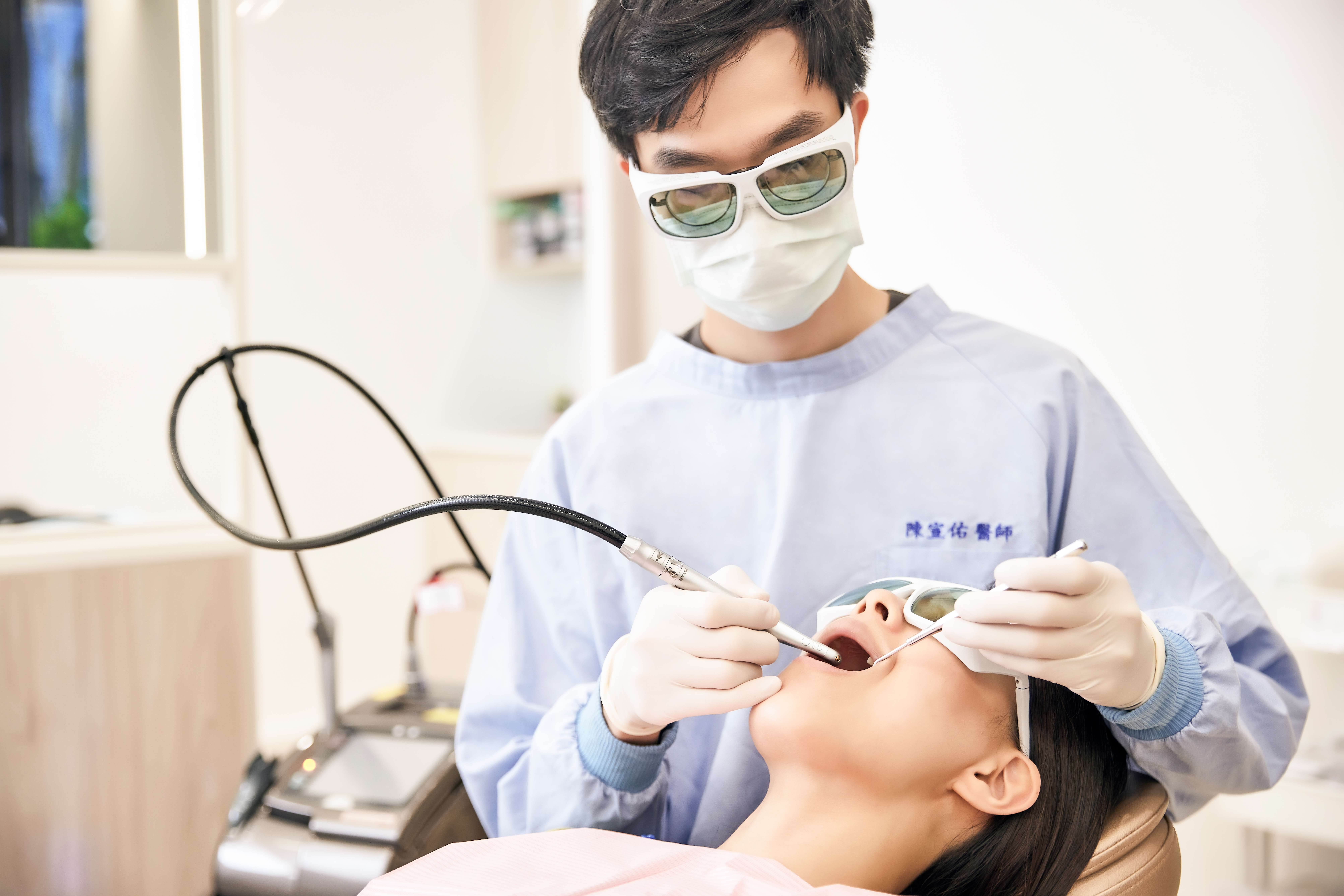 水雷射是一種結合「雷射能量」與「水分子霧化技術」的高科技牙科治療設備,當水分子吸收雷射會被激發產生高速動能,產生去除發炎組織或是切割牙齒、齒槽骨的能力,又因為有水的存在,能使牙周組織以及牙齒避免產生熱傷害,大幅降低傳統器械帶來的疼痛、出血與術後不適。 水雷射可精準去除蛀牙、修整牙齦輪廓,甚至用於輔助治療牙周病與消炎殺菌,不僅溫和侵入性也低,且術後恢復快,適合對牙科治療較為敏感或有恐懼的患者,是現代牙科中少數能兼顧舒適與效率的進化型治療技術。